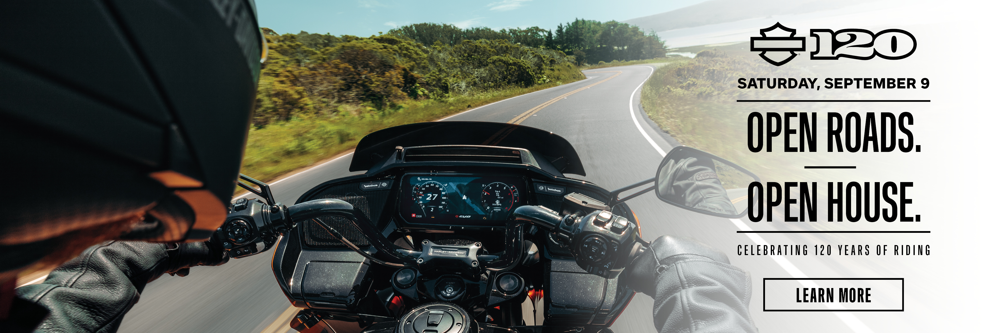 You’re invited to celebrate 120 years of riding at our OPEN ROADS. OPEN HOUSE., Saturday, September 9.